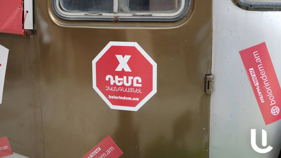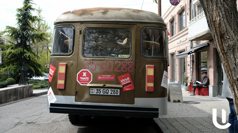 «Բոլորին դեմ եմ» կուսակցության անդամներն այսօր իրենց ընտրական ցուցակը կենտրոնական ընտրական հանձնաժողով հանձնելու համար եկել էին իրենց քարոզչական ավտոբուսով: