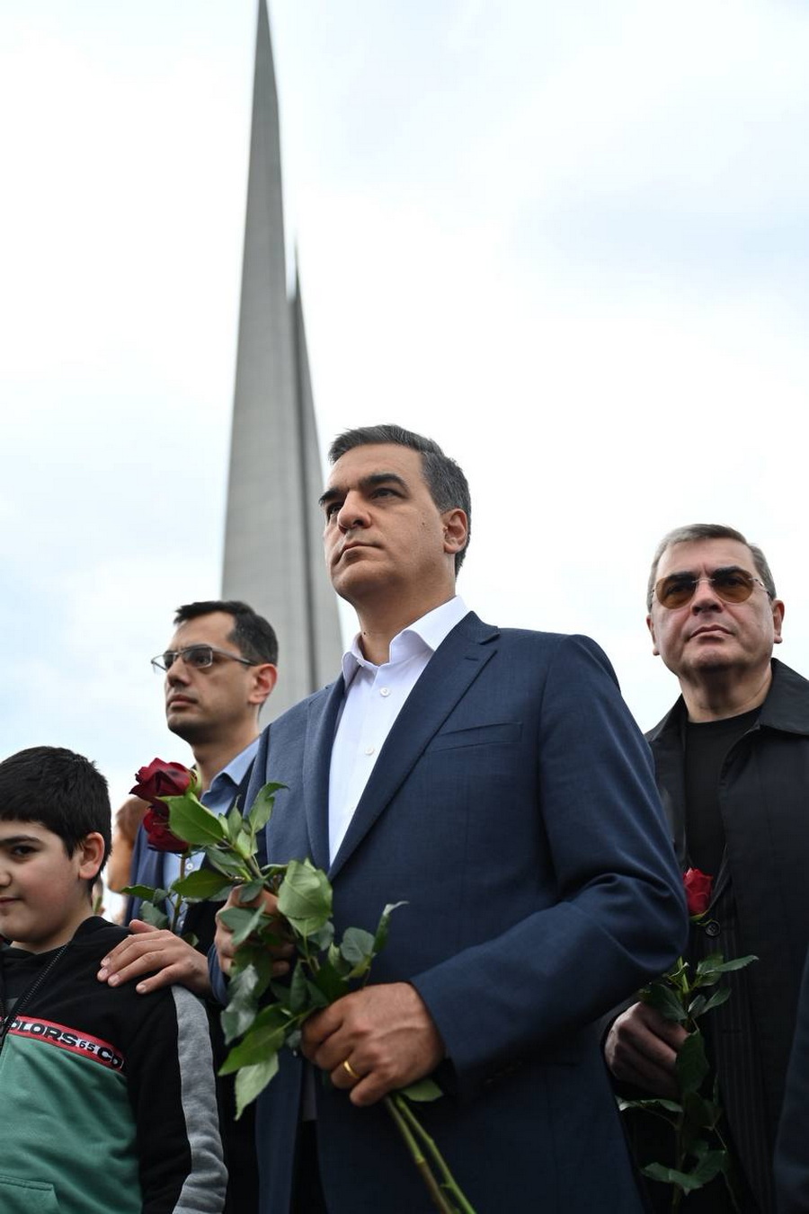 Լրագրողների փաստմանը՝ իշխանությունները խորհուրդ են տալիս չապրել ցեղասպանություն վերապրածի հոգեվիճակով և հարցին՝ այսպիսով մոլորեցնո՞ւմ են ժողովրդին, Արման Թաթոյանը պատասխանեց․ «Այս իշխանությունը մոլորեցնում է քաղաքացիներին, այդ ցեղասպանության հոգեվիճակի մեջ է պահում․․ անընդհատ զիջել, վախերի մեջ ապրել, չզարգանալ։ Մենք խոսում ենք ուժեղանալու մասին, ասում են՝ պատերազմ կլինի։ Նիկոլ Փաշինյանի կառավարության՝ այսօրվա քաղաքականությունը ուղիղ պատերազմի տանող ճանապարհ է։ Սրա շնորհիվ կոծկում են իրենց ձախողումները․ սեփական սխալները թաքցնելու քաղաքականությունն է»։