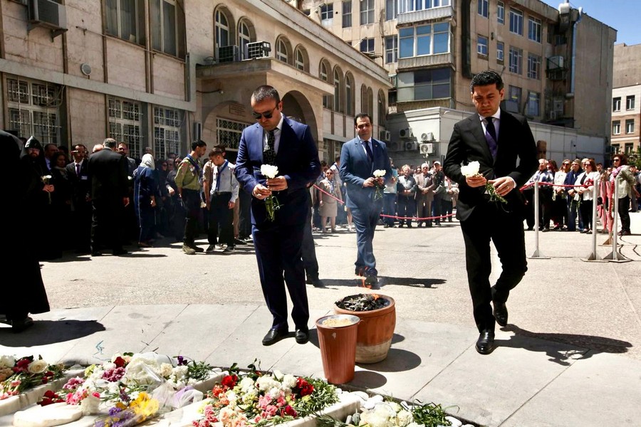 կապակցությամբ Թեհրանի Սուրբ Սարգիս եկեղեցում մատուցված հոգեհանգստի պատարագին, այնուհետև ծաղիկներ խոնարհել Ցեղասպանության զոհերի հիշատակին նվիրված հուշարձանին: