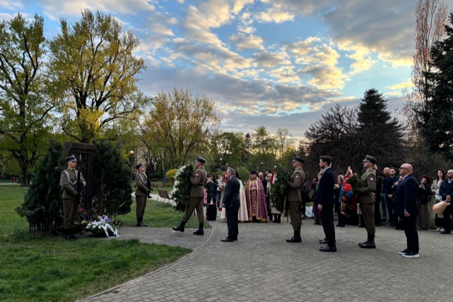 Այնուհետև հնչել է բարեխոսական աղոթք՝ Լեհաստանում Հայ Առաքելական Եկեղեցու հոգևոր հովիվ Հոգեշնորհ Տեր Մինաս աբեղա Հախվերդյանի և Լեհաստանի Հայ Կաթողիկե եկեղեցու հոգևոր հովիվ ծայրագույն վարդապետ Յուզեֆ Նաումովիչի կողմից, որին հաջորդել է ծաղիկների զետեղման արարողությունը։