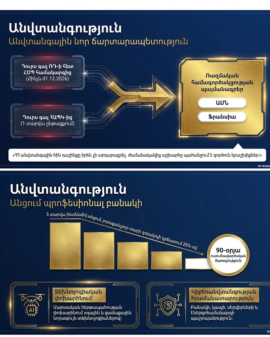 - Դուրս գալ ՌԴ-ի հետ համատեղ ՀՕՊ համակարգից՝ մինչեւ 2026-ի դեկտեմբերի 1-ը