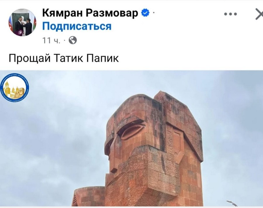 Բաքվի բռնապետական վարչակարգի քարոզչական մեքենայի անձնական սպասարկու դարձած բլոգեր Քյամրամ Ռազմավարը հրապարակել է հերթական լուսանկարը, որը ևս մեկ անգամ հաստատում է, որ ադրբեջանական իշխանությունները չեն հրաժարվել Արցախի ինքնության կարևորագույն խորհրդանիշներից մեկը վերացնելու մտադրությունից։