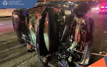 «Nissan»-ը բախվել է ճանապարհի բաժանարար բետոնե պատնեշին ու կողաշրջվել