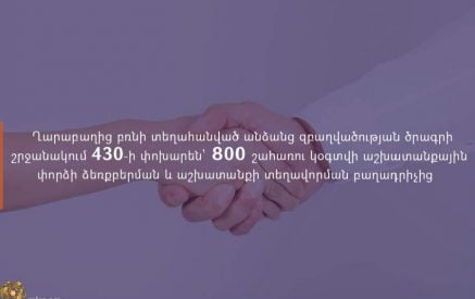 Ղարաբաղից բռնի տեղահանված անձանց զբաղվածության ապահովման ծրագրի շրջանակում 800 շահառու կօգտվի աշխատանքային փորձի ձեռքբերման և աշխատանքի տեղավորման բաղադրիչից