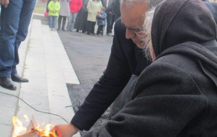 Րաֆֆի Հովհաննիսյանը ձեռքով հանգցրեց Քոչարյանի եւ Սարգսյանի նկարների կրակը (Տեսանյութ)