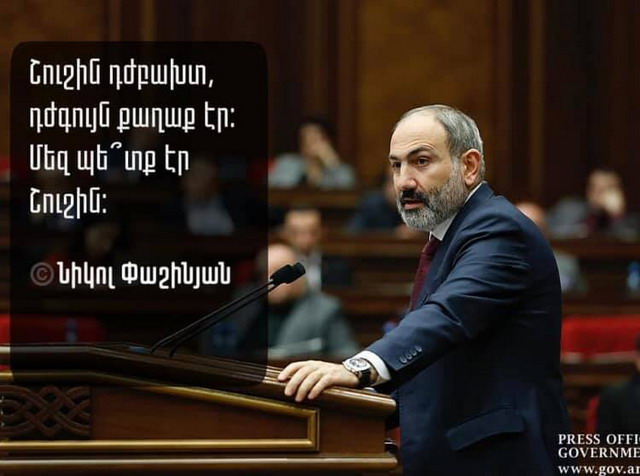 «Փաշինյան Նիկոլն ապրում է մի կղզում, որի անունն է Փաշինյան Նիկոլ, որտեղ մի մենակատար կա՝ Փաշինյան Նիկոլն է, և որտեղ կլինի մեկ ունկնդիր, ու այդ մեկը նորից կլինի Փաշինյան Նիկոլը»․ քանդակագործ