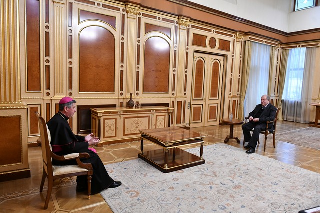«Ողջույններ եմ բերել Հռոմի Ֆրանցիսկոս պապից, որը վառ հիշողություններ ունի 2016-ին Հայաստան այցից և նախագահ Սերժ Սարգսյանի ու Ամենայն Հայոց Կաթողիկոս Գարեգին Երկրորդի հետ հանդիպումից». Էդգար Պենյա Պառայ
