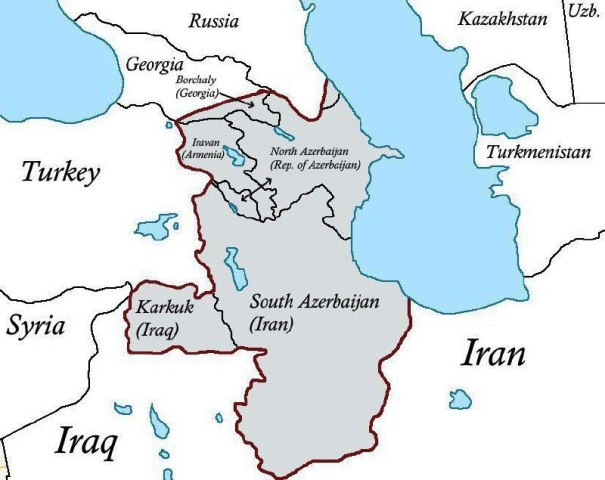 Ահա քարտեզներից մեկը, որում երևում է, թե ինչպես են պատկերացնում Ադրբեջան պետության ծավալումը ի հաշիվ Հայաստանի, Իրանի և Վրաստանի. Վարուժան Գեղամյան
