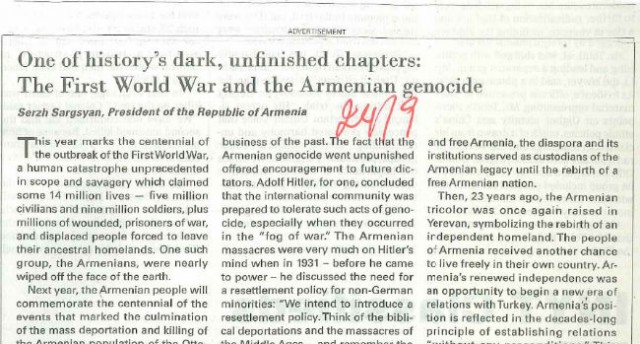 «New York Times»-ը հրաժարվել է 1915 թվականի վերաբերյալ թուրքերի հայտարարությունը հրապարակել. Dailysabah